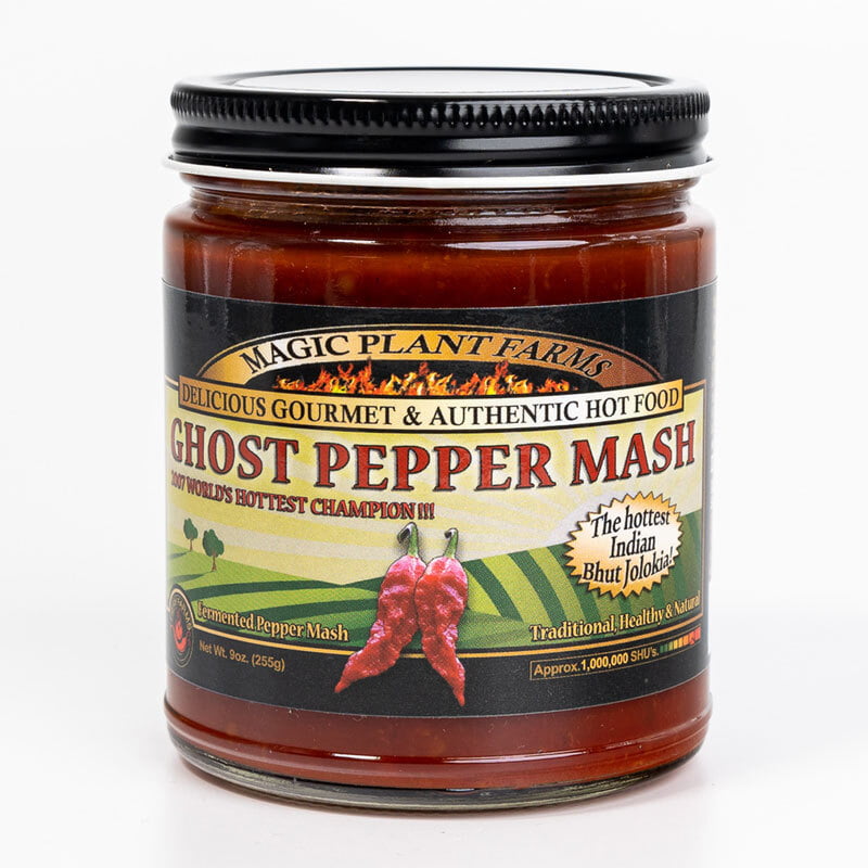 Red Ghost Pepper Mash by Magic Plant – aka Bhut Jolokia | Embrace the Super Hot Ghostly Bite | 1M SHU | Distinctive Rich Fruity Flavor | Fresh Pepper Replacement | Add to Any Dish - Drink (9 oz)