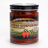 Magic Plant Farms' Red Trinidad Scorpion Butch T chili pepper fermented mash. Our premium, healthy chili mash brings an insane heat level that has a long and lasting sting!
