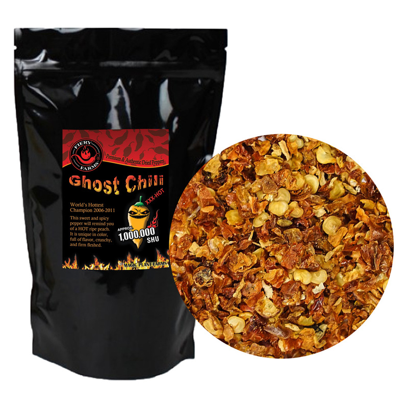 Magic Plant Farms' Orange Ghost Crushed Chili Pepper Flakes. We have cultivated and refined the world's most fragrant and flavorful Ghost chilies.