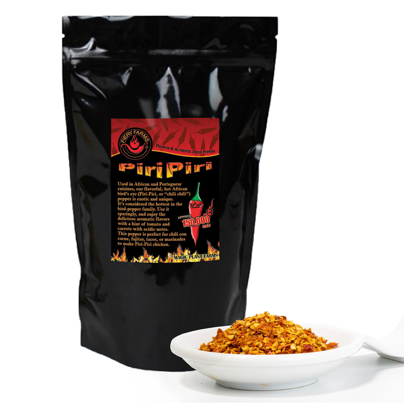 Magic Plant Farms brings you intense heat and complex flavors of our premium African Birds Eye crushed chili pepper flakes, also known as Peri-Peri flakes - pure and uncut. Learn about its origins in Southern Africa, its vibrant appearance, and how it adds a fiery kick to various cuisines, including the famous peri-peri sauce and peri-peri chicken.