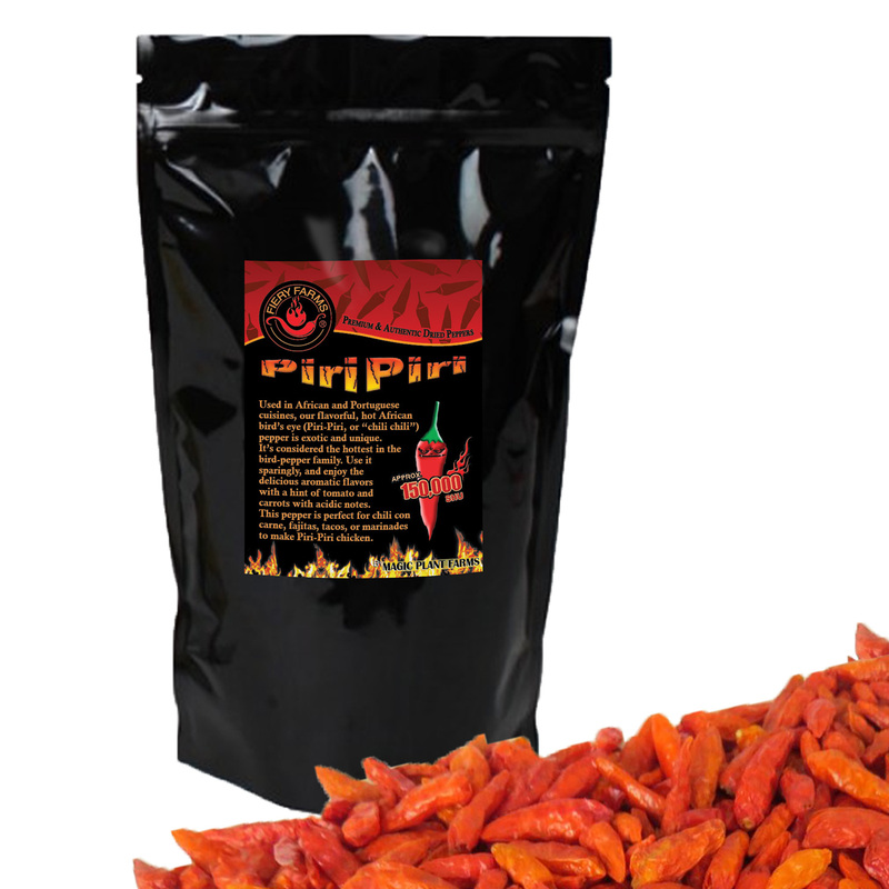 Magic Plant Farms brings you intense heat and complex flavors of our premium African Birds Eye dried whole chili pepper pods, also known as Peri-Peri pods - pure and natural. Learn about its origins in Southern Africa, its vibrant appearance, and how it adds a fiery kick to various cuisines, including the famous peri-peri sauce and peri-peri chicken.