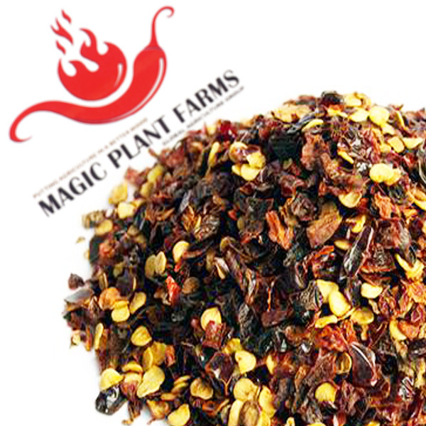 Magic Plant Farms' Ancho Crushed Chili Pepper Flakes. We have cultivated and refined the world's most fragrant and flavorful Ancho chilies.