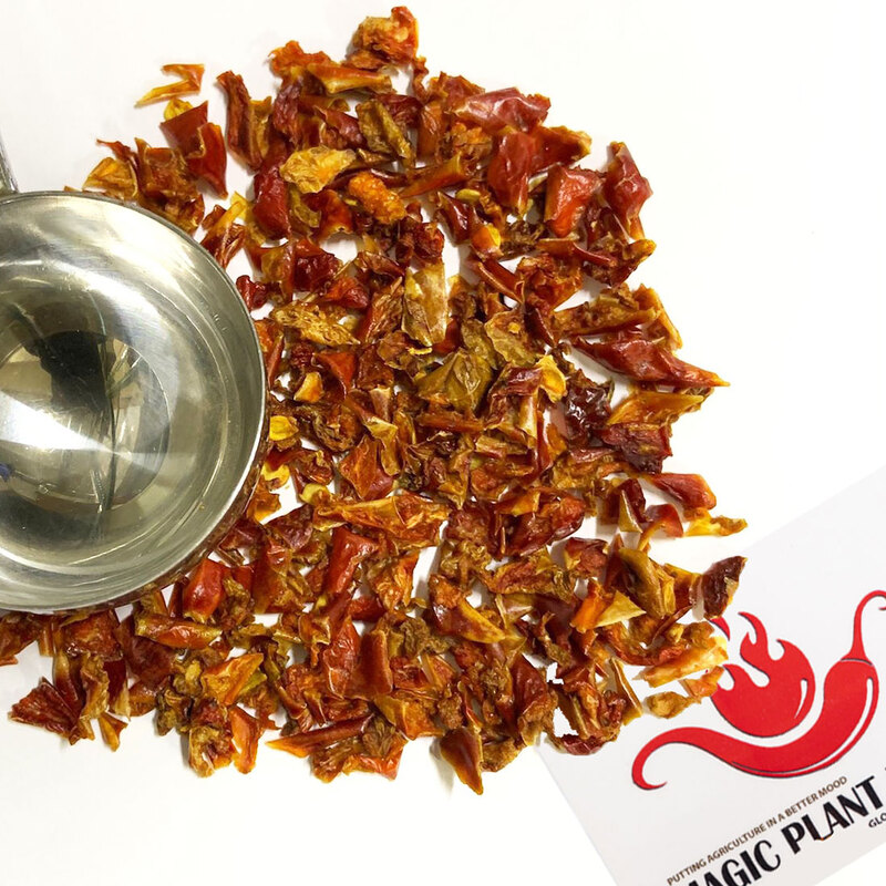 Magic Plant Farms' Red Bell Crushed Chili Pepper Flakes (Diced 6x6 ETO Treated). We have cultivated and refined the world's most fragrant and flavorful Bell peppers.