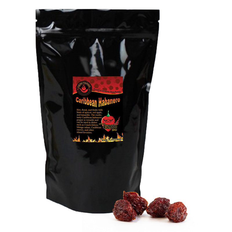 Dilute the heat: If you're not used to eating such hot peppers, you can dilute the heat by mixing our whole pods or ground Red Caribbean Habanero peppers with our milder peppers like our Low Heat Dried Peppers (Chipotle Morita) or our sweet dried peppers (Green Ancho Peppers, Red Cascabel Pepper, Red Poblano Mulato Pepper, Trinidad Pimento (Trini Pemiento), Peppadew Peppers / Sweety Drop Peppers). This will still give you the fruity floral flavor of the Red Habanero without the overwhelming heat.