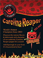 Magic Plant Farms' Red Carolina Reaper Crushed Chili Flakes. We have cultivated the World's - HOTTEST - Hottest Reaper Pepper! The Carolina Reaper holds the Guinness World Record for being the hottest chili pepper in the world (2013). Overall, it averages over 1.5 million SHUs, but our refined reapers push the scale up to ~ 2.2 million SHUs.