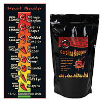 Our natural Carolina Reaper packs a powerful heat at 1,500,000 to 2,200,000 (SHUs). Our reapers have the classic "creeper heat". The burn intensifies with time. So those few seconds prior to that - this respected pepper actually has a really nice complex sweet and fruity flavor! Our Carolina Reaper ground pepper, crushed flakes and dry whole pods are insanely hot (spicy) so use with common sense and caution. Remember, the heat intensifies after eating so start with a very small taste test to gauge your heat tolerance.