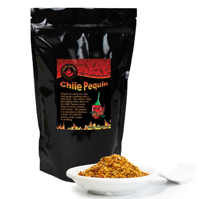 Magic Plant Farms' Red Pequin Crushed Chili Pepper Flakes. We have cultivated and refined the world's most fragrant and flavorful Pequin chilies.