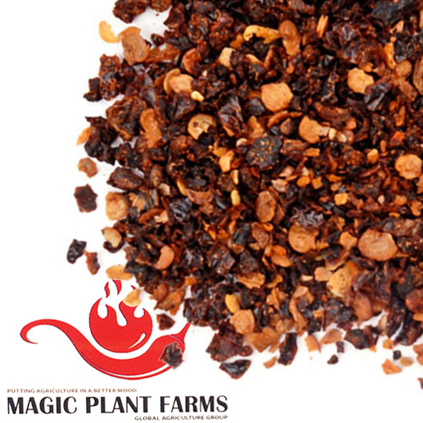 Magic Plant Farms' Red De Arbol Crushed Chili Pepper Flakes. We have cultivated and refined the world's most fragrant and flavorful De Arbol chilies.