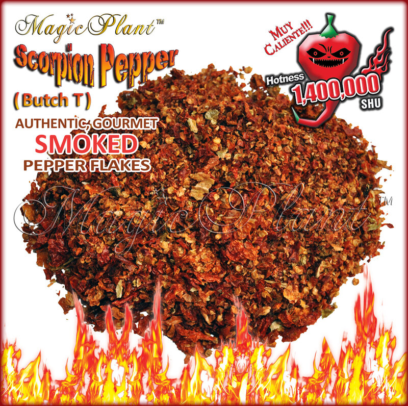 Crushed Chili Pepper Flakes - non-GMO, pure and uncut. We have cultivated and refined the world's hottest Scorpion chiles.